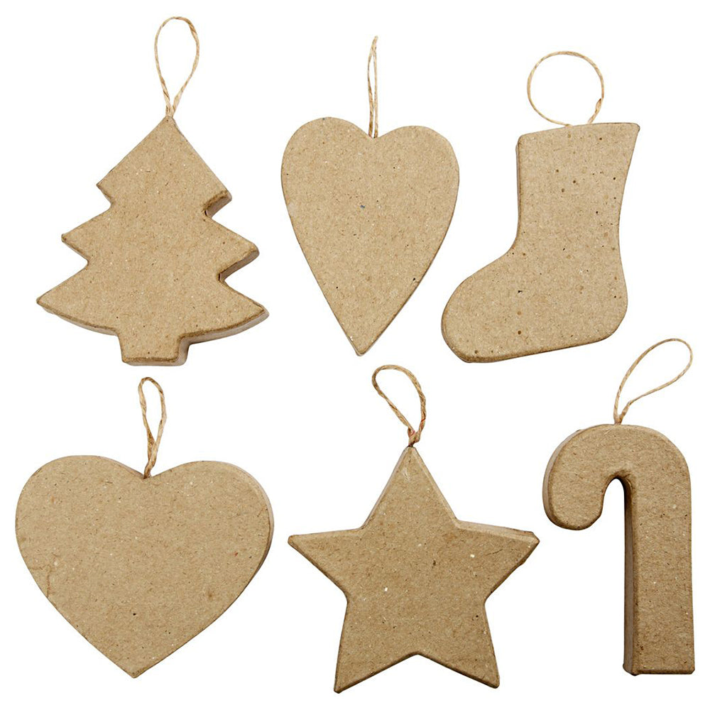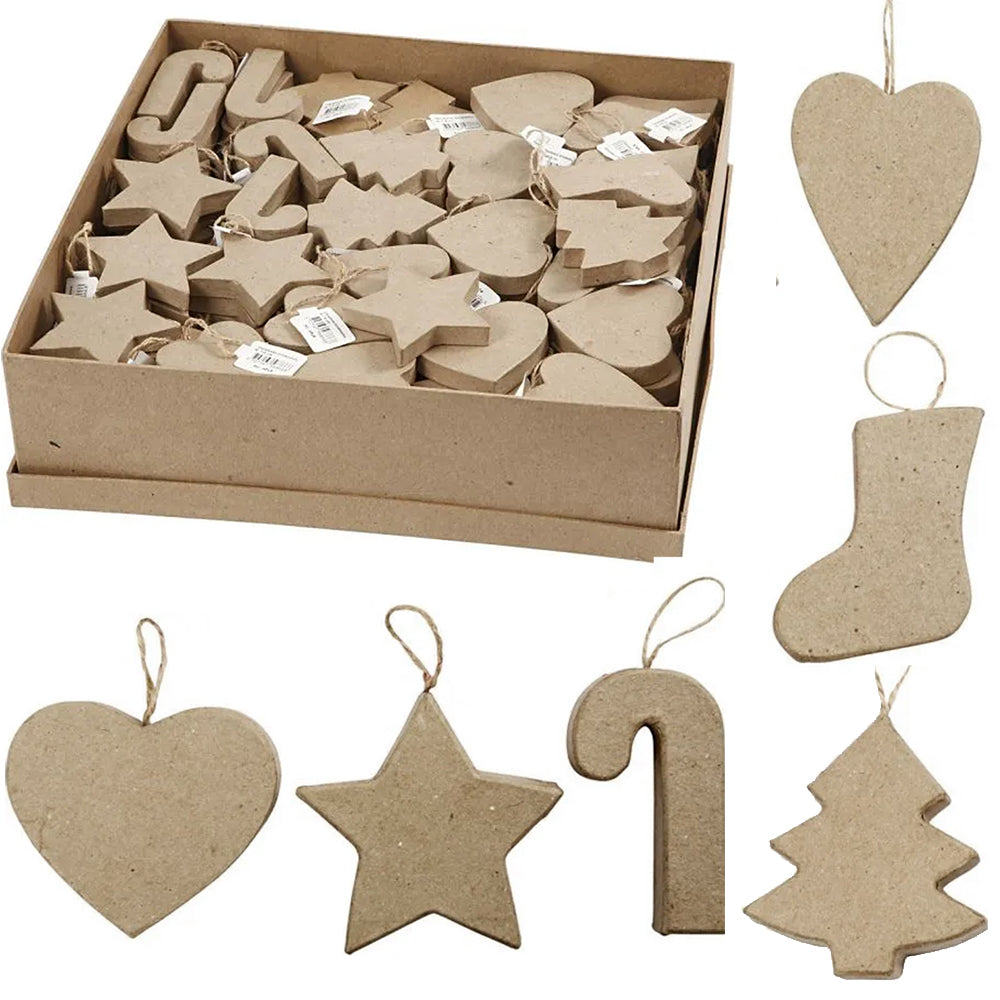Paper Mache Hanging Christmas Ornaments | 6 or 174 Mixed Craft Shapes | 8cm Tall