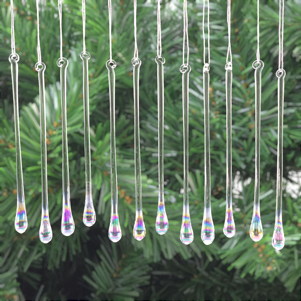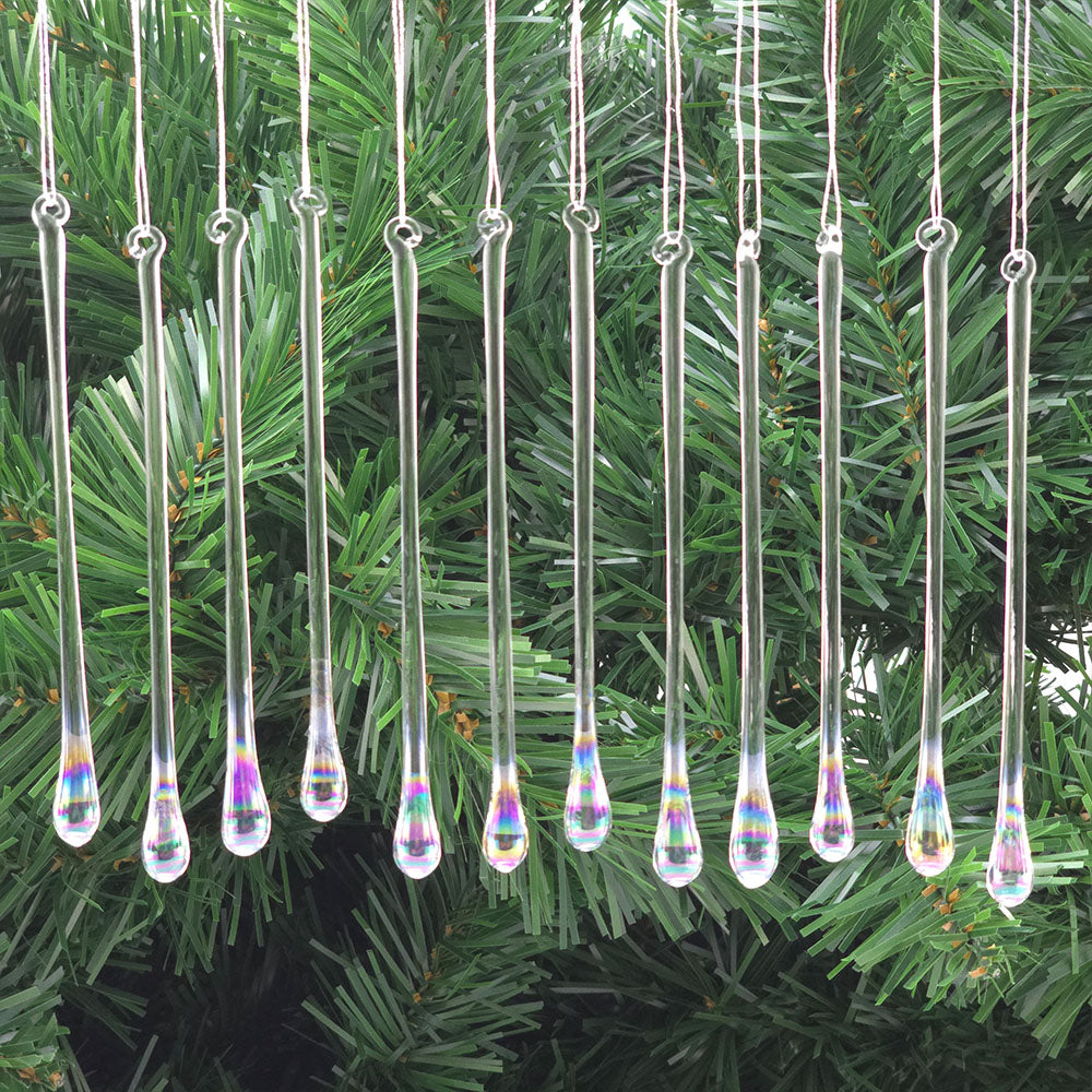 Iridescent | Glass Water Drops | Set of 12 | Christmas Tree Decorations | 12cm